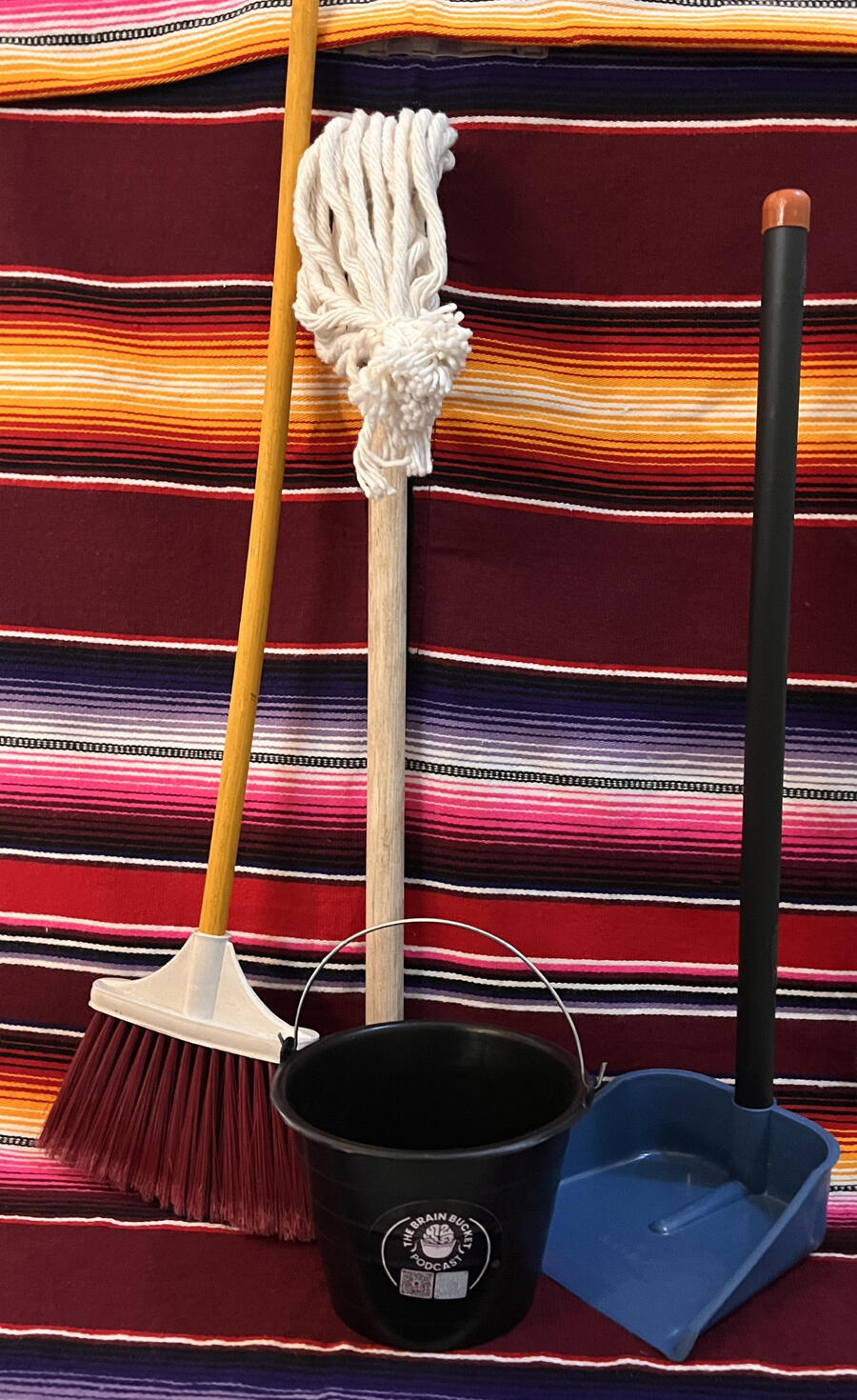 A miniature cleaning set with big cultural roots - includes a realistic broom, mop, dustpan, and bucket. Straight from the heart of Mexico!These kits are authentic, functional, and hard to find - perfect as a unique gift for kids, or for real use around the house.Inspired by tradition. Branded by The Brain Bucket Podcast.✋ Limited quantity — these are sourced deep from local markets in Mexico and may vary slightly in color and design.